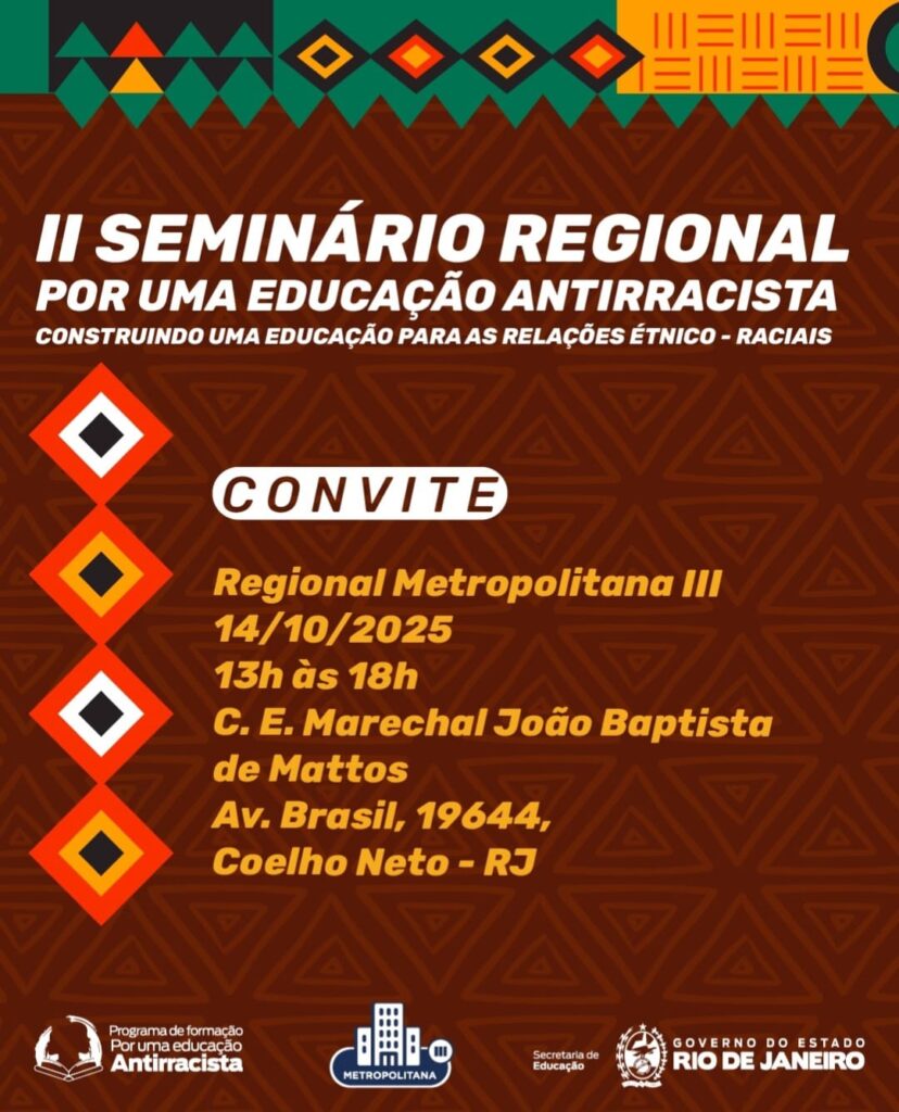Na próxima terça-feira, dia 14 de outubro, ocorre o Seminário Étnico-Racial na Escola Estadual Marechal João Baptista de Mattos das 13h às 18h.